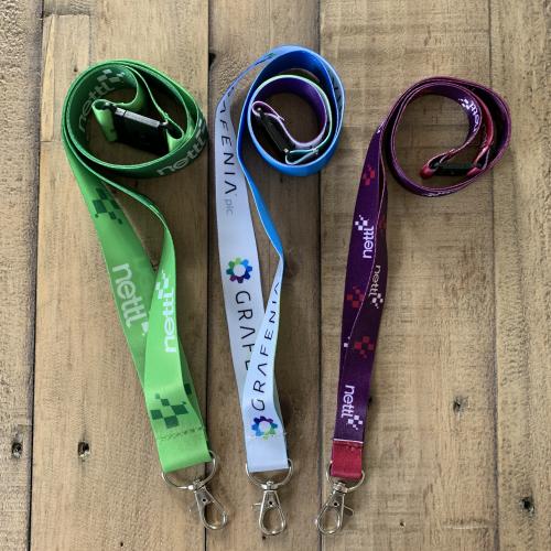 Each lanyard comes with a safety break and dog clip as standard and they are available in 3 widths;