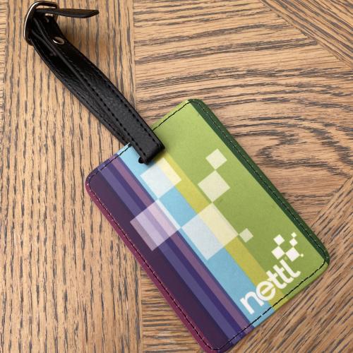 Our custom printed faux leather luggage tag is full colour printed to both sides via dye sublimation.