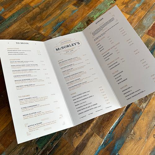 With options for A5, A4, and A3 sizes, you can choose the perfect size for your needs. Plus, with half fold, roll fold, and gatefold options available, you can customize your menu to fit your branding and style. These menus are sure to impress your customers and make ordering a breeze.
