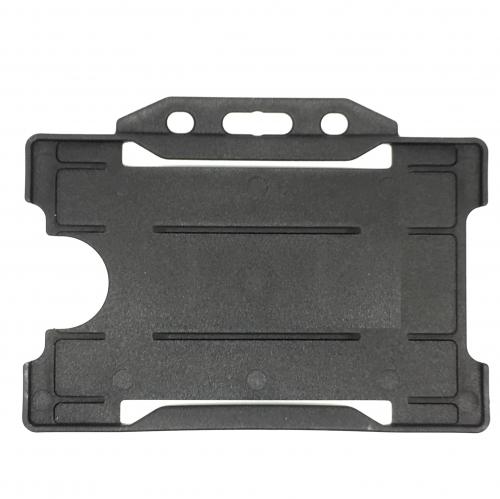 Our rigid card holders are available in a variety of colours and landscape or portrait, both options to be chosen at checkout. An antimicrobial version of these is available that contains Biomaster which disrupts bacteria cells from growing. They allow a card size of 86 x 54mm.