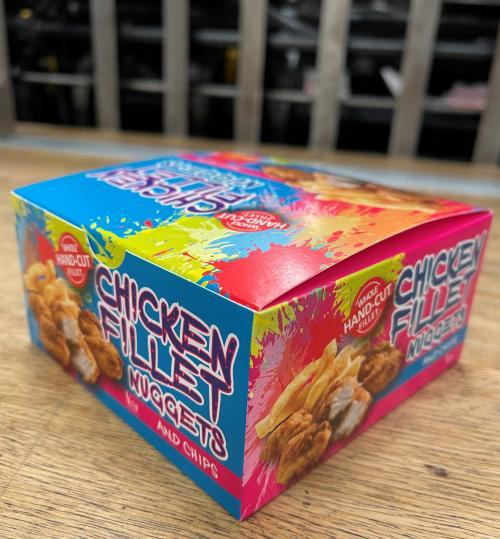 Our custom printed takeaway boxes are made using grease resistant folding box board, suitable for a wide range of food.